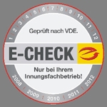 Der E-CHECK zeigt, dass die geprüfte Elektroinstallation und die geprüften Elektrogeräte allen Sicherheitsaspekten genügen. Er weist gegenüber Ämtern, Berufsgenossenschaften und Versicherungen den einwandfreien Zustand der Elektroanlage aus. Durch den E-Check kommen Sie allen gesetzlichen Verpflichtungen nach, und viele Versicherungen honorieren dies mit ermäßigten Prämien. Wann vereinbaren Sie Ihren Termin für den E-Check? |